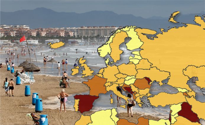 Het ecdc brengt wekelijks een stand van zaken van de europese reisbestemmingen uit.